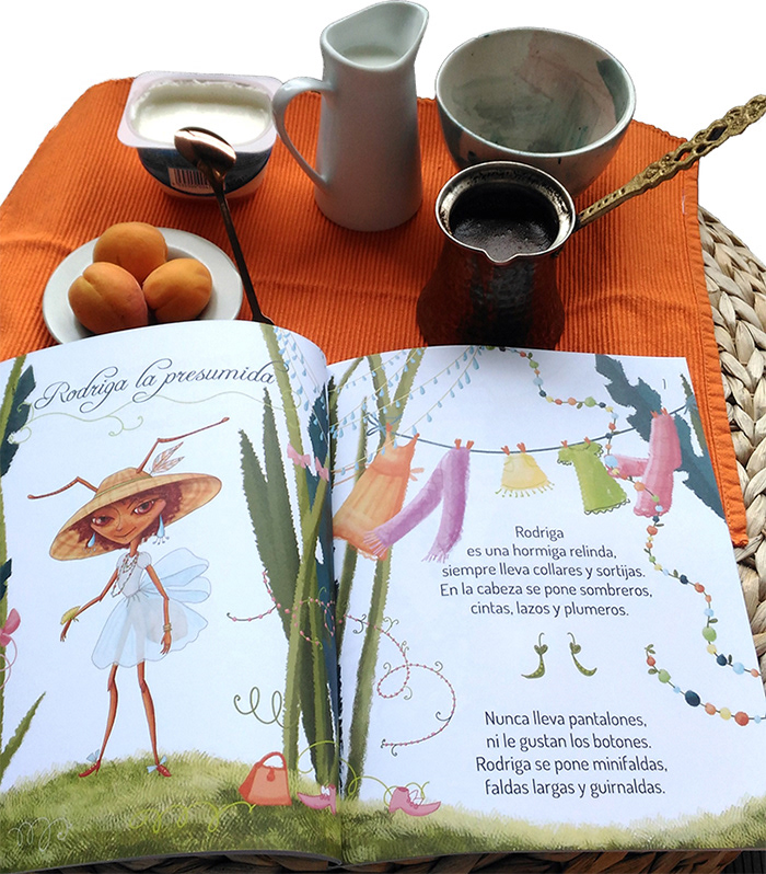 This book of poems by Carmen Marin is the second in a series created for Spanish students and children. The first, 'Poemas del bello camello', focused on the pronunciation of the sounds of Spanish, and this one, 'Poemas de la hormiga Rodriga', touches on basic topics of initial level of Spanish such as the house, the family or physical appearance .